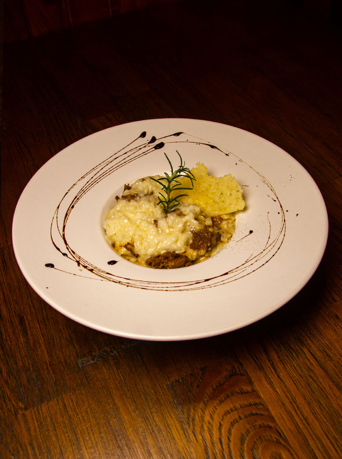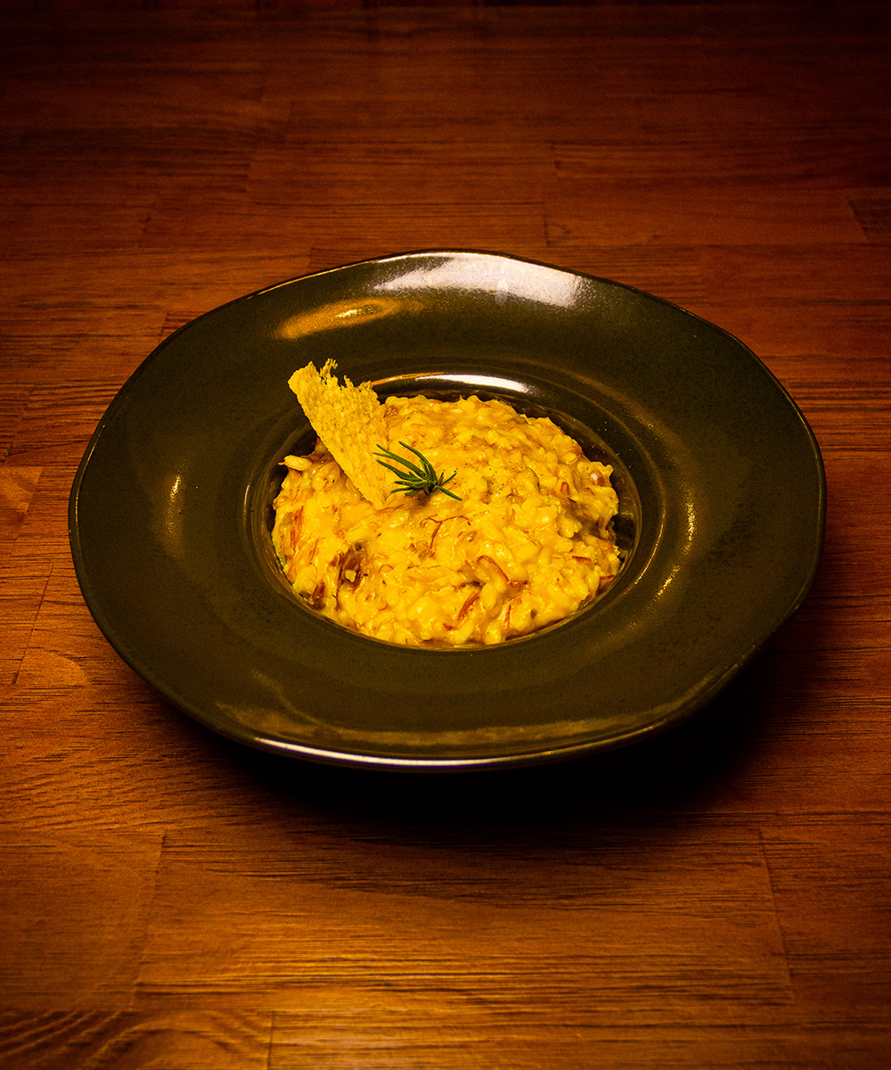 Risoמּo de queijo parmesão, manteiga e acompanha ragu de ossobuco.